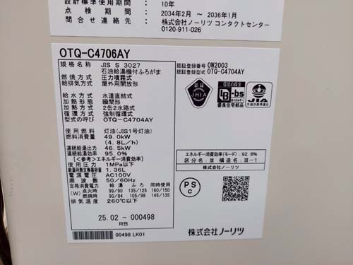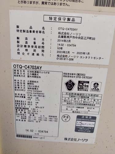 七戸町赤川向 ノーリツ石油給湯機付ふろがまOTQ-C4706AY 給湯器交換工事