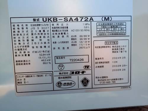 施工事例:大鰐町 コロナ石油給湯機付ふろがまUKB-SA472A(M) 給湯器交換工事