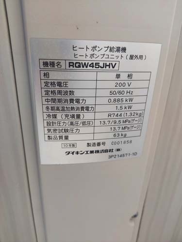 横浜町 ダイキン工業ヒートポンプ給湯機 ヒートポンプユニットRQW45JHV→コロナ自然冷媒CO2家庭用ヒートポンプ給湯機 ヒートポンプユニットCHP-DZ451K エコキュート交換工事