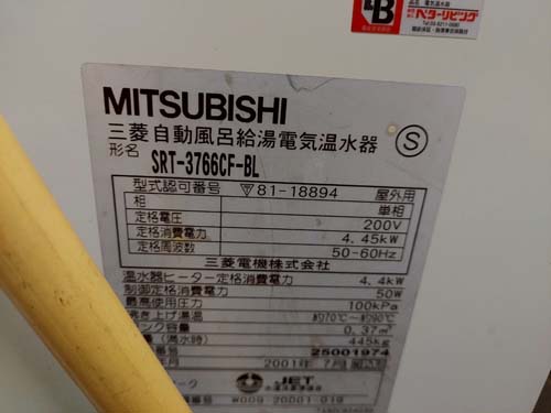 風間浦村易国間 三菱電機自動風呂給湯電気温水器SRT-3766CF-BL→コロナ給湯器 給湯器交換工事